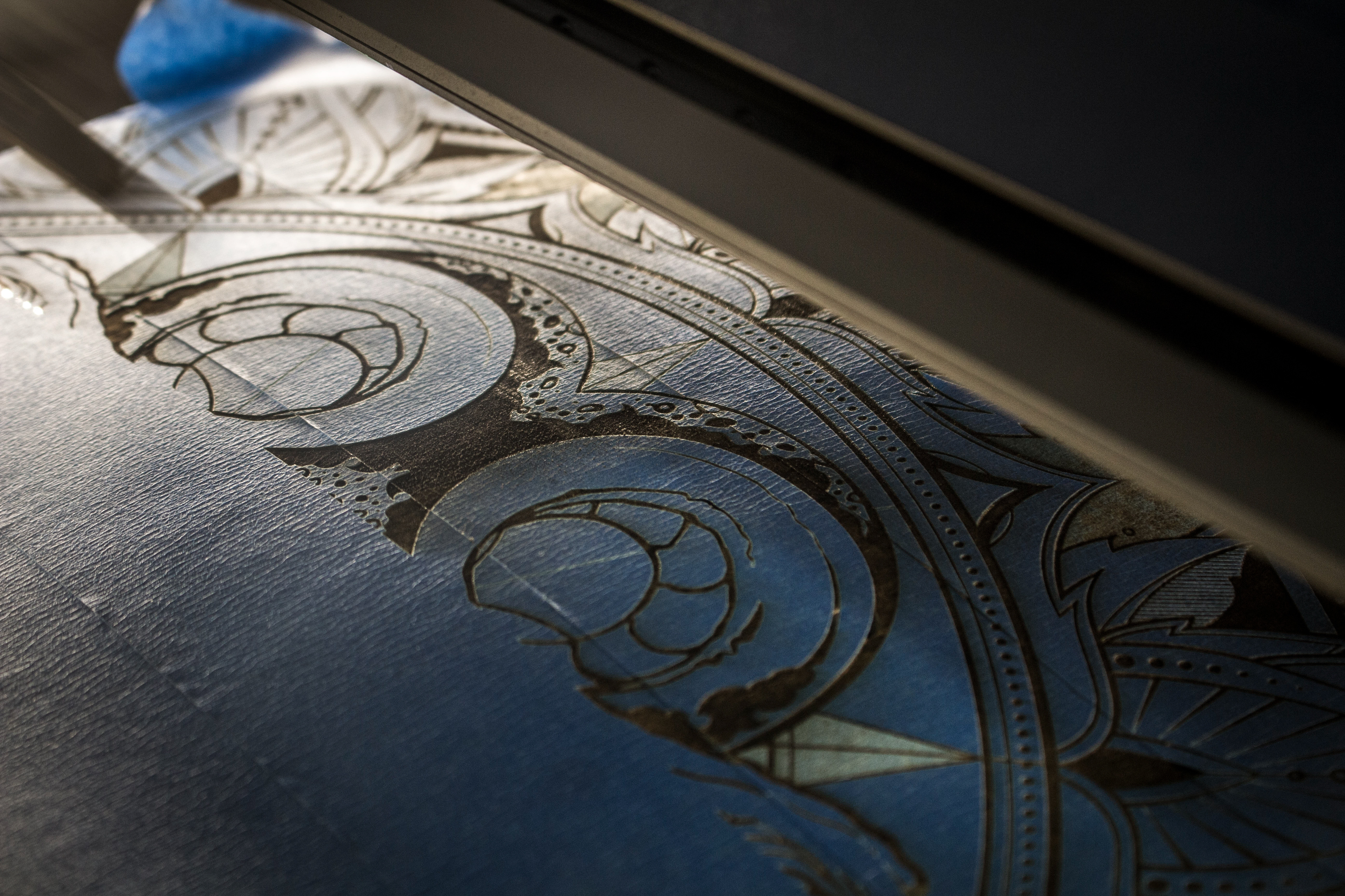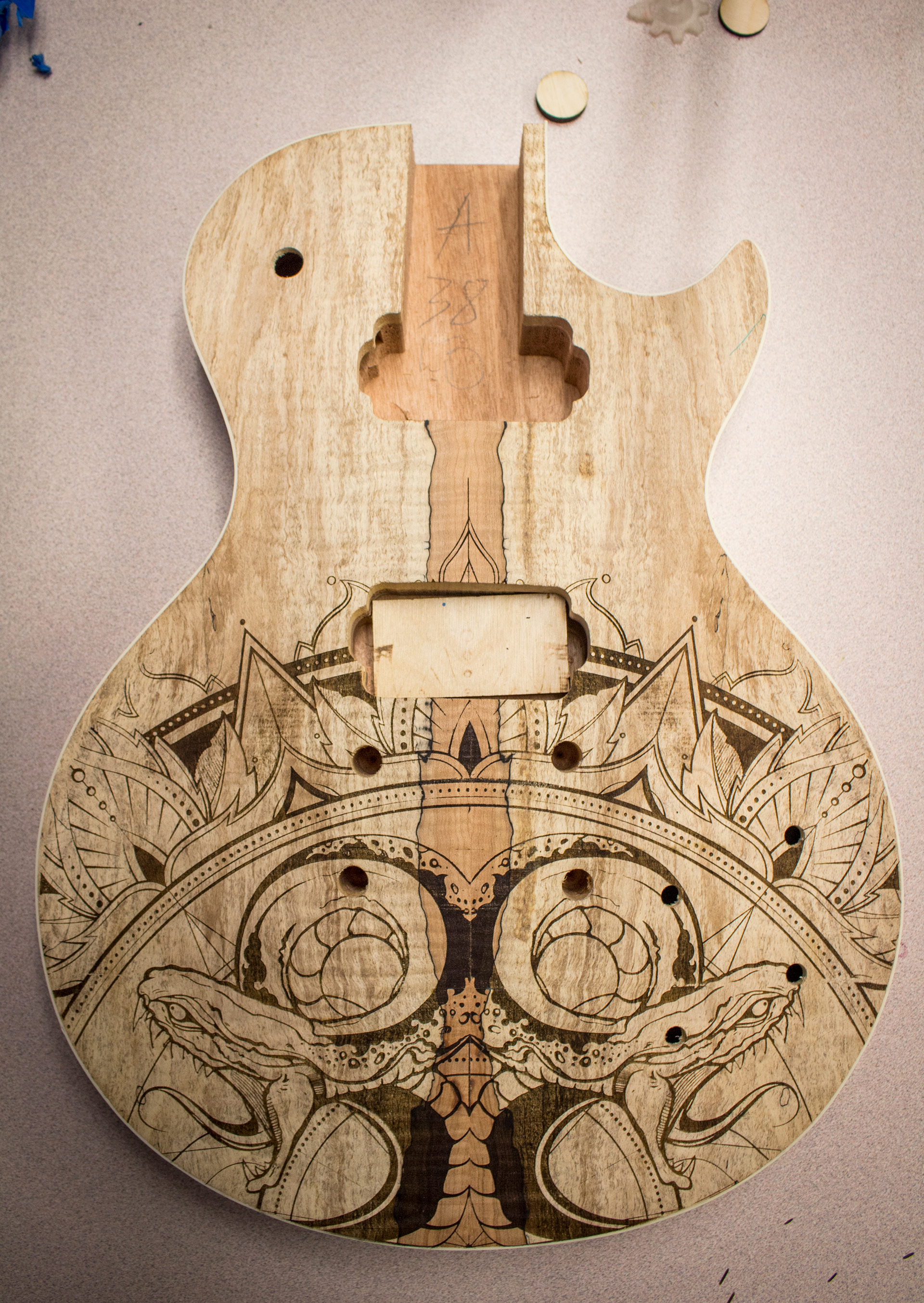 The beast I was lucky to have access to for this project was an Epilog Fusion M2 Laser Series. Alignment was an insanely manual and stressful process in order to ensure the artwork sat perfectly across the convex surface.