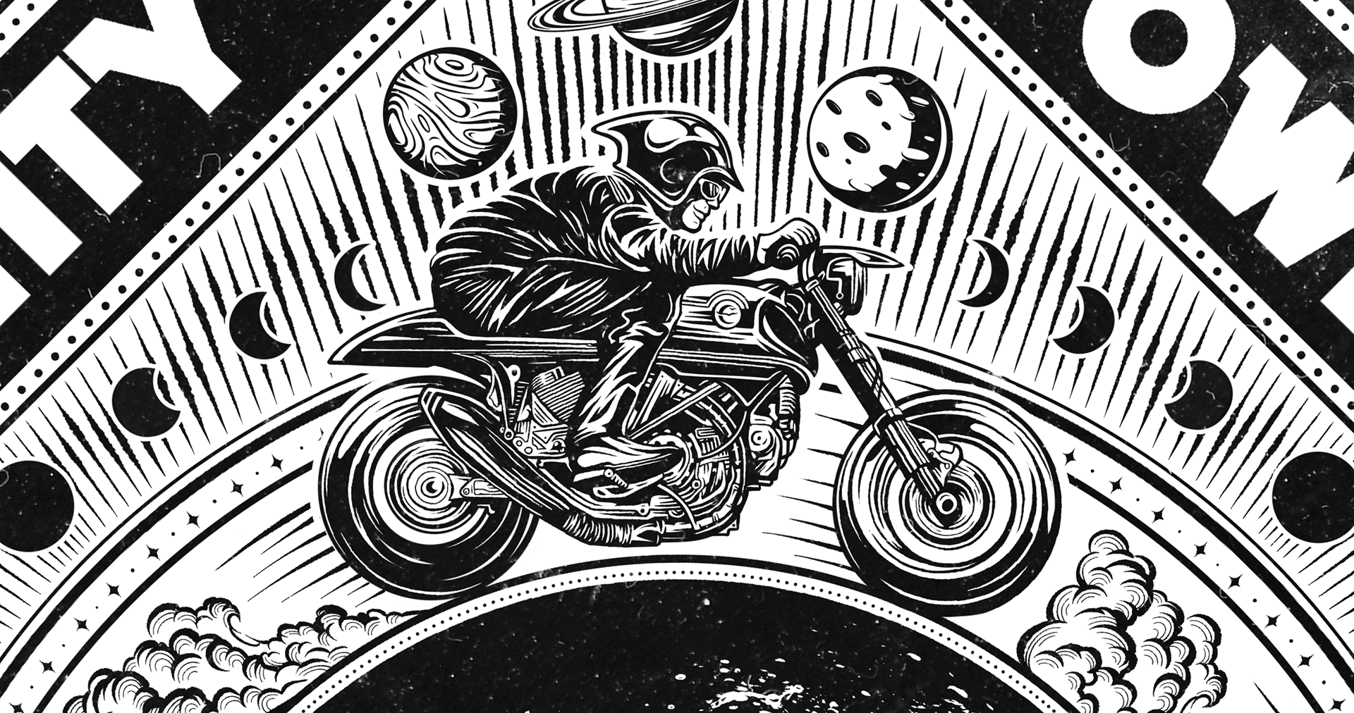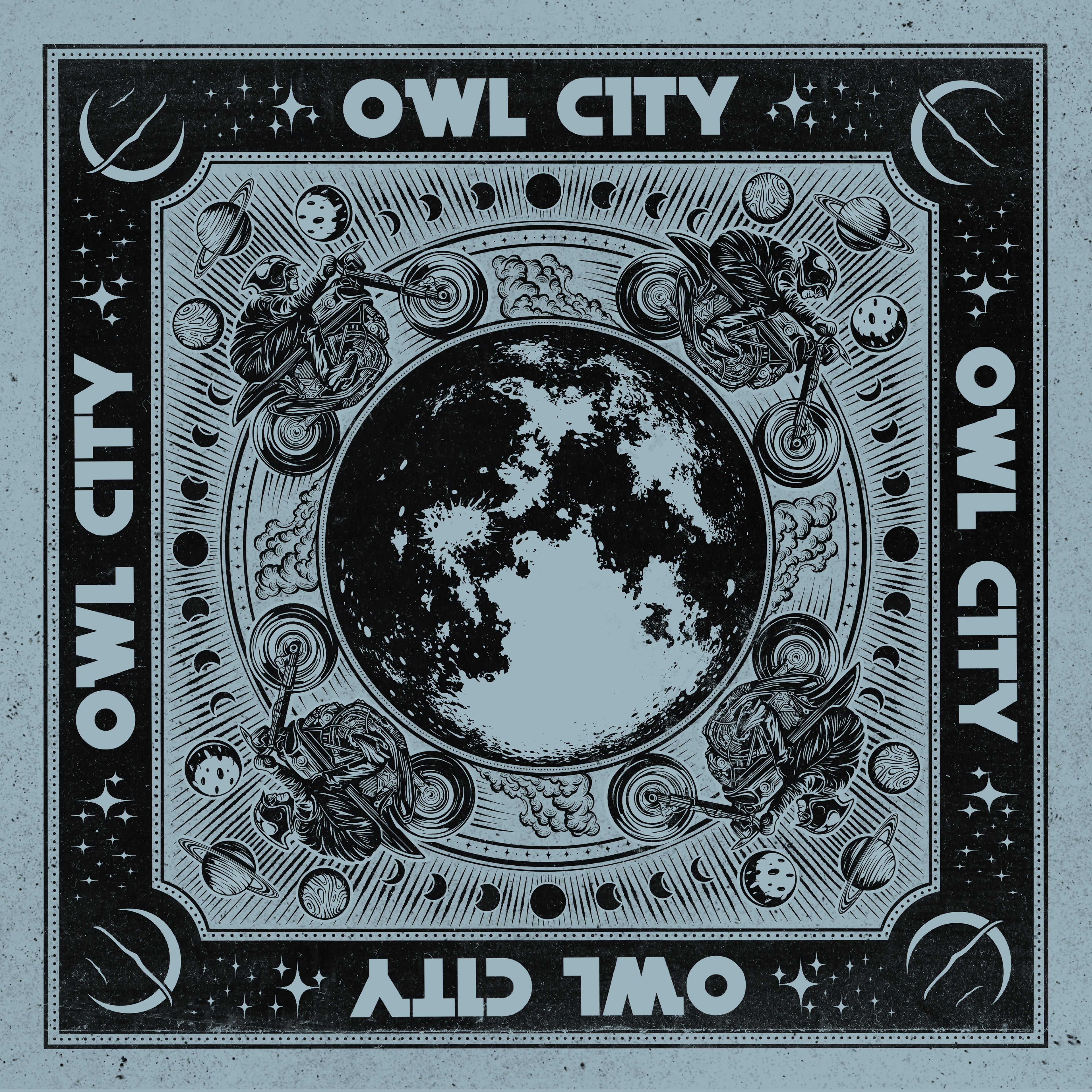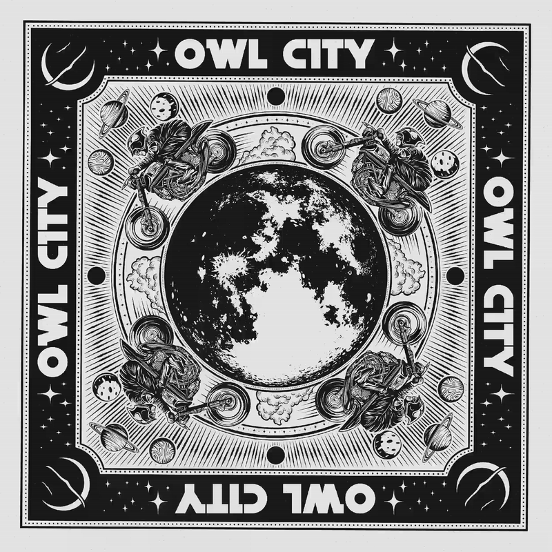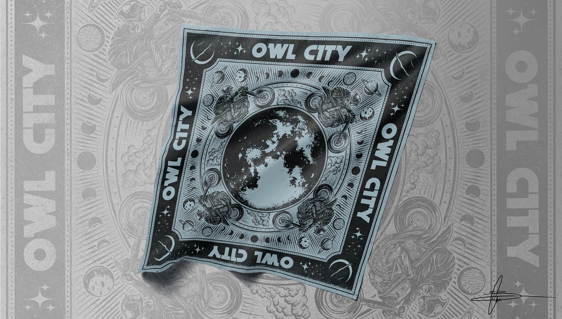 The band Owl City, led by songwriter and multi-instrumentalist Adam Young got in touch to work on a new look for their merchandise and upcoming tour "To The Moon". Starting with a bandana design, they wanted to illustrate certain aspects and visuals raised in their newest album "Coco Moon" while playing with a rustic and retro illustration style.